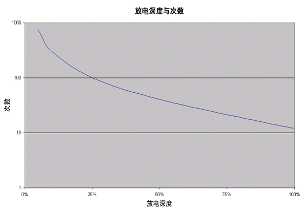 图1. ML电池充/放电次数与放电深度的对应关系。