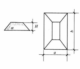 \(V=[ab- \frac {H}{tanΑ } (a+b- \frac {4H}{3tanΑ } )] \times H\)