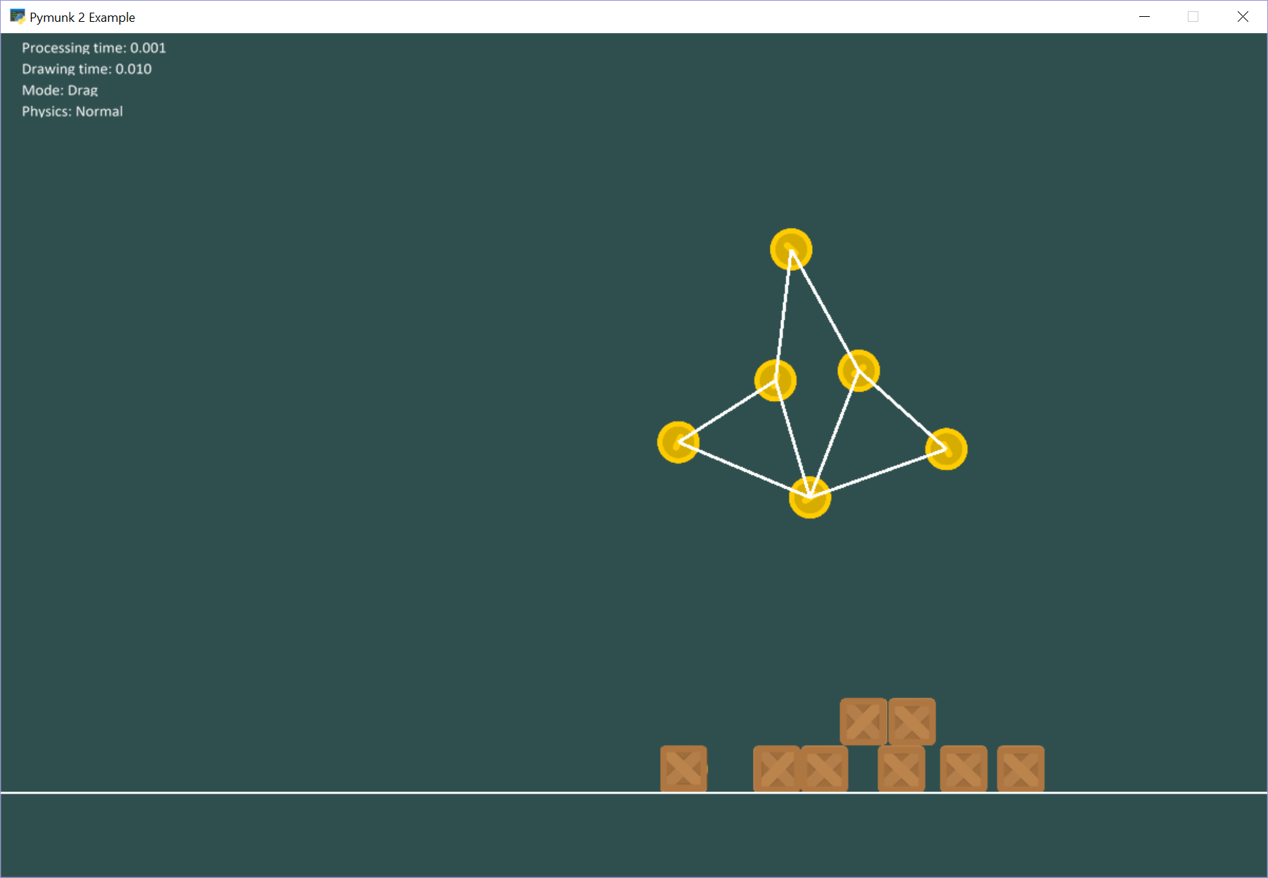 5python -m arcade.examples.pymunk_joint_builder
