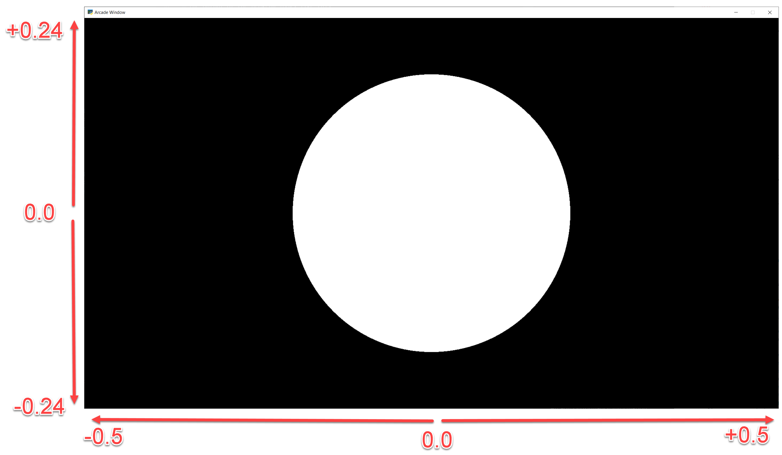 接下来,我们想要将圆居中,并根据纵横比进行调整。这将在屏幕中央显示一个(0,0)和一个完美的圆圈。