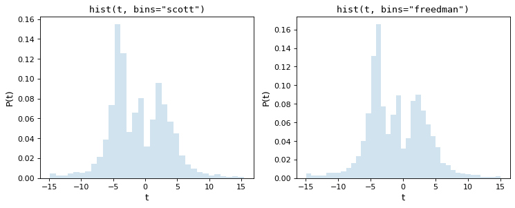 ax[i].set_title(f'hist(t, bins="{bins}")',