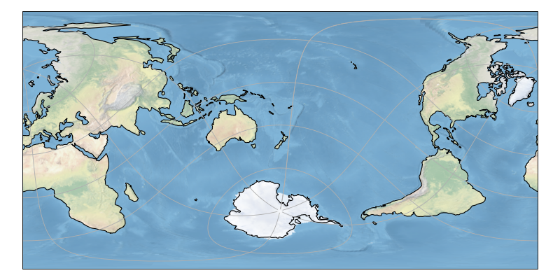 AzimuthalEquidistant和AlbersEqualArea已添加。看到 Cartopy投影列表 查看现已以Cartopy形式提供的完整预测列表。Web地图服务(GMS)界面已扩展,以支持在服务不支持正在绘制的地图的投影时图像的动态重新投影。下面的示例通过将GMS图像添加到中断的Goode Homolosine地图来演示该过程-毫不奇怪,该GMS服务不提供IGH图像,因此Cartopy不得不从GMS确实支持的投影中重新投影它们: