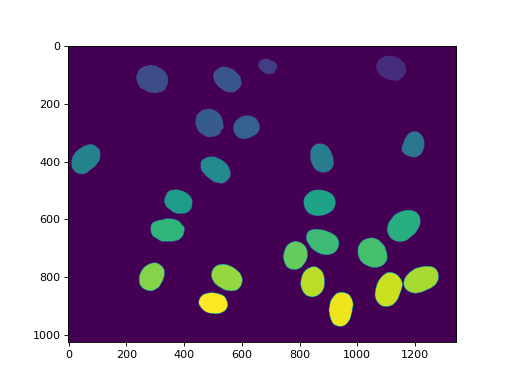 print('After filtering and relabeling, there are {} nuclei left.'.format(n_left))