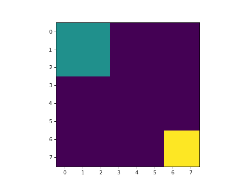 还有一个额外的论据 label :结构元素,默认为3x3交叉(或4邻域)。这定义了两个像素位于同一区域意味着什么。您可以使用8个邻域,将其替换为一个正方形::