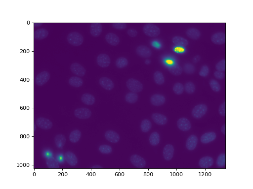 这里有一个稍微复杂一点的例子。完整的代码在 demos directory AS nuclear.py. We are going to use this image, a fluorescent microscopy image from a nuclear segmentation benchmark