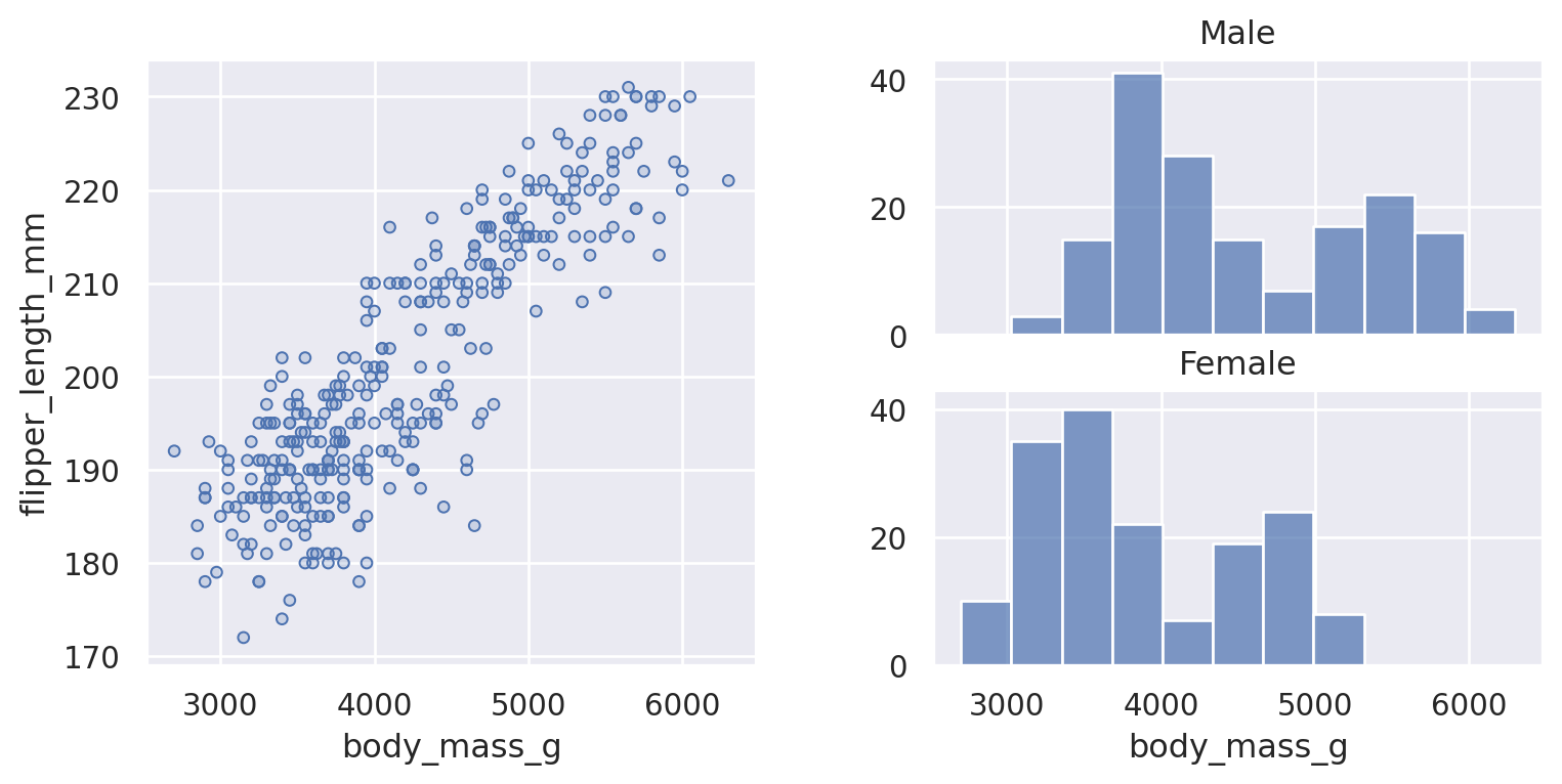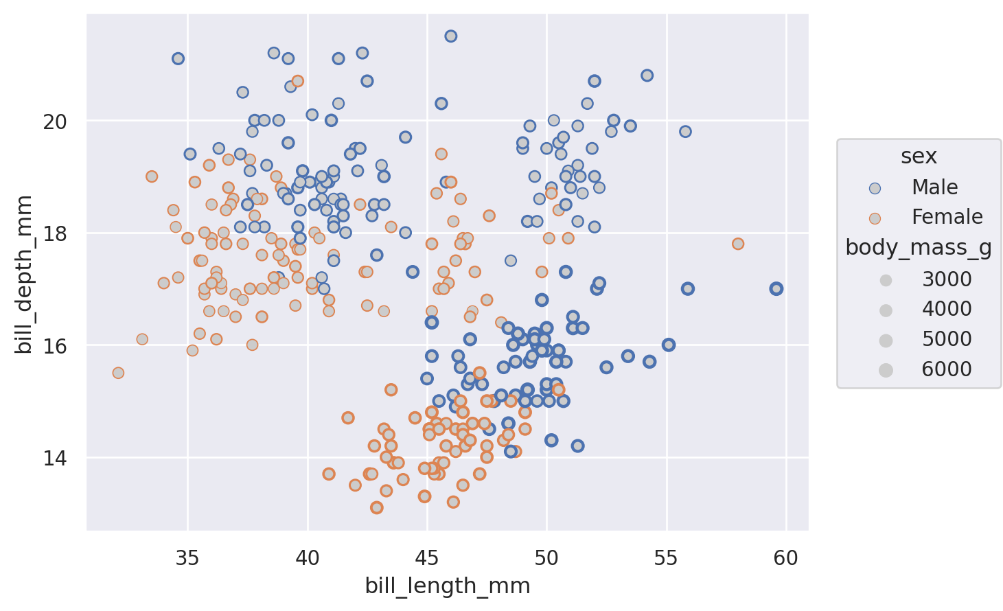 >>> edgecolor="sex", edgewidth="body_mass_g",