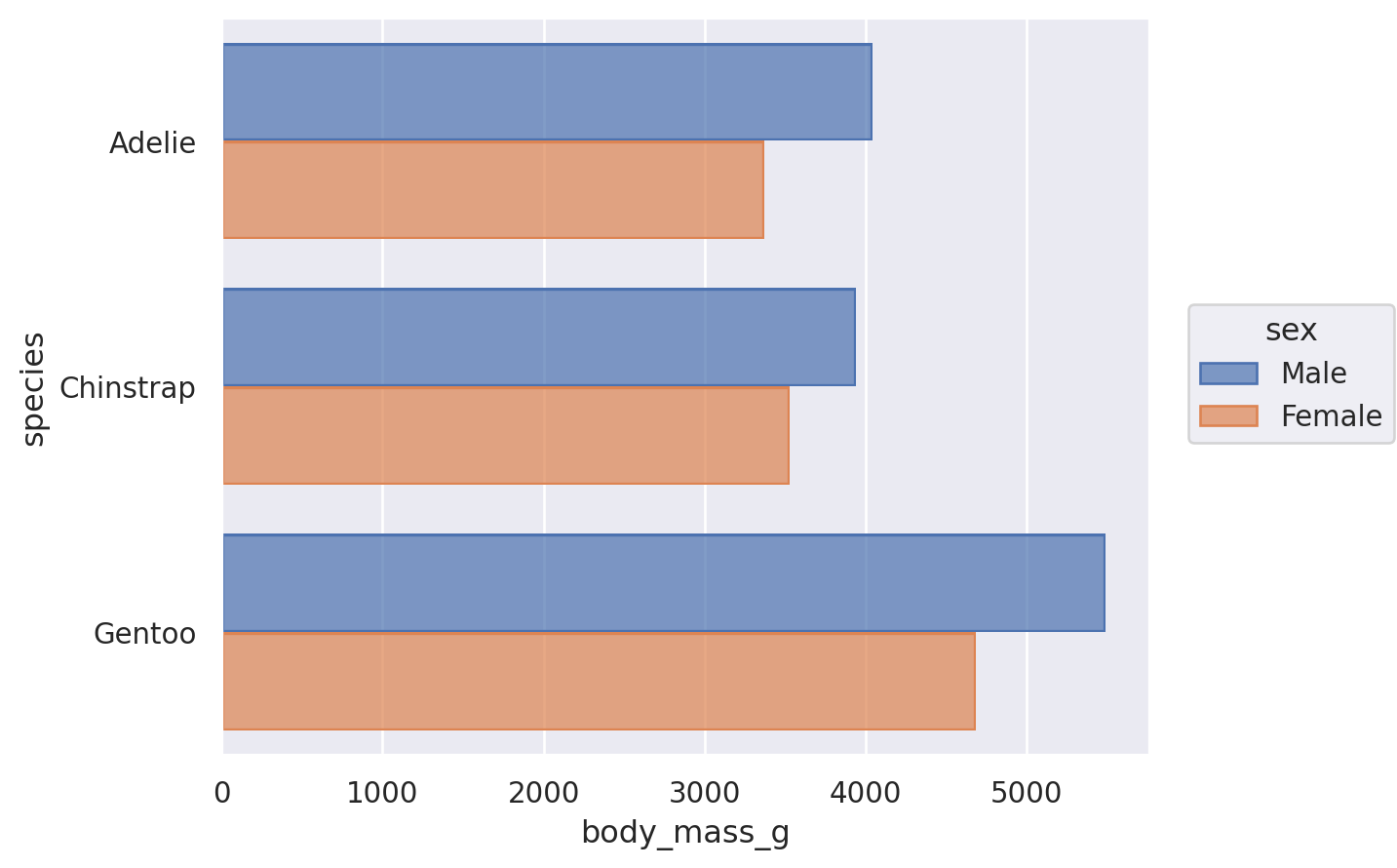 和body_mass_g 的赋值,我们将得到相同的图,但方向是水平的: