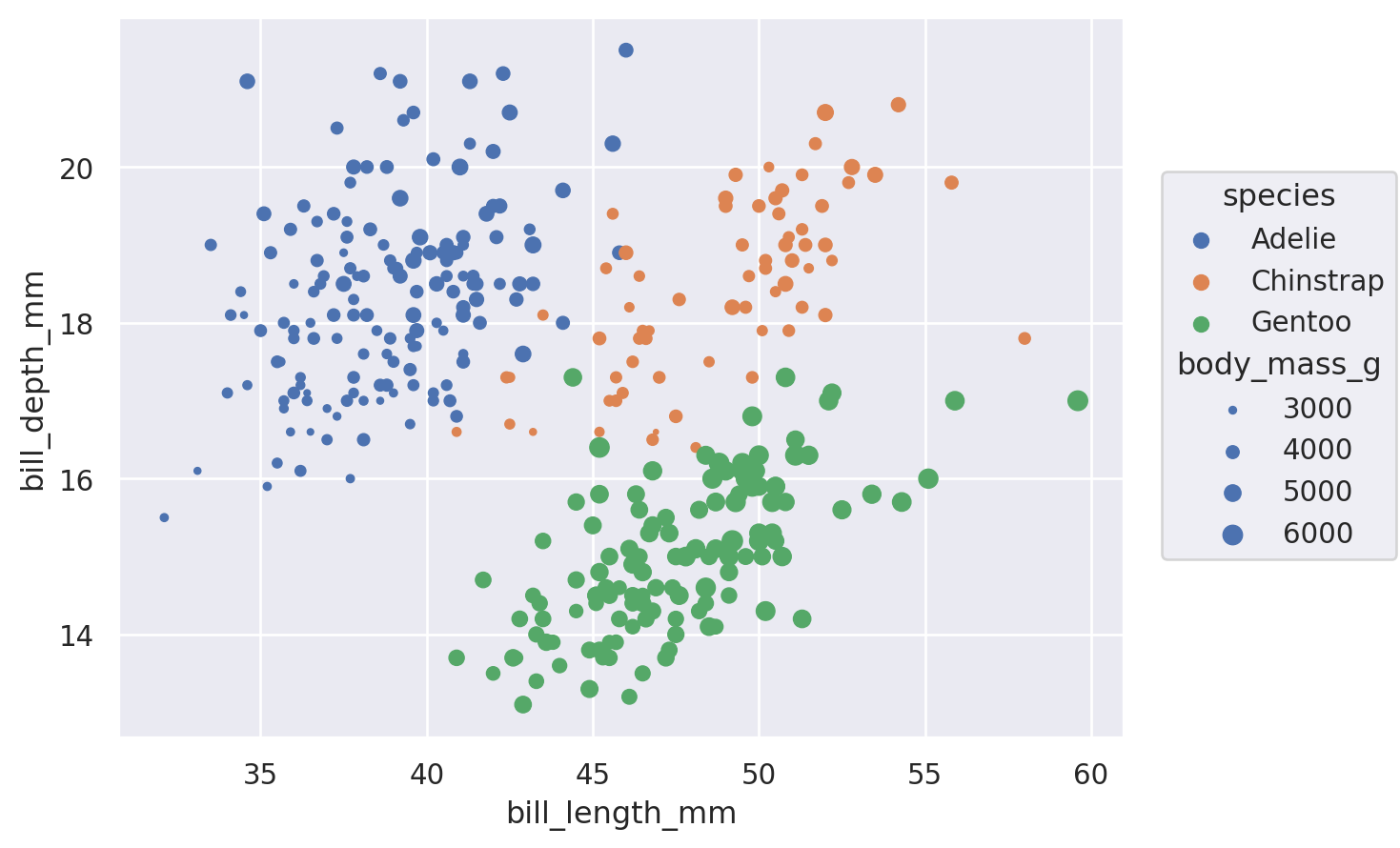 >>> penguins, x="bill_length_mm", y="bill_depth_mm",