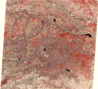 我们标记了三个典型的模糊模式A、B和C。其中一个模式A位于加拿大河的一个拐弯处,特别突出,出现在一个已知的油田上。