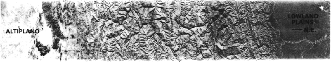 这种反射地面以显示地形的能力是在移动平台上运行的雷达的主要用途。在我们展示的雷达图像带(航天飞机上的SIR-A系统)中,这一有用性得到了显著的证实,该雷达图像带向东北(右侧)延伸了300公里(200英里),横跨玻利维亚折叠和解剖的南美安第斯山脉。图像覆盖了从西部的高原(Altiplano)到东部的低地(亚马逊盆地)。(滚动查看右端。)