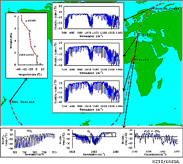 先进地球观测卫星(ADEOS)是日本的一个航天器,于1996年8月17日发射,利用美国航天局、NOAA、NASDA(日本)和CNES(法国)提供的十个仪器进行陆地、海洋和大气研究。现在,在一颗给定的卫星上从几个国家收集传感器变得越来越普遍。这些传感器中包括一个NASA散射计(NSCAT)和TOMS。接下来,我们将展示使用日本两个机构提供的仪器的发声器绘图示例:用于监测温室气体的干涉仪(IMG),它观察CO的吸收带。2 CH 4 h 2 o,o 3 没有 2 在0.715-2.0微米通道中,CO在2.0-2.5微米通道中,CH4在2.32-3.05微米通道中;红外临边大气分光计(ILAS)检查臭氧分布。