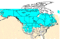 国家气象局保存了一份最新的美国积雪覆盖图,如图所示,1997年3月9日至12日。这张地图包含了有雪的区域,但并非蓝色的每一部分都有覆盖物。