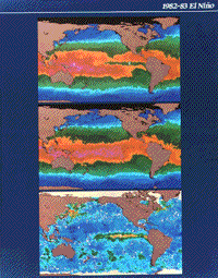 另一个可观测到的全球变化是平流层臭氧的消耗,这是由这些微量气体中的一种——氟利昂引起的。平流层中的臭氧吸收进入的太阳紫外线辐射(uvr),这对生活系统是危险的。这种紫外线辐射会对生物系统的遗传物质造成损害。臭氧防止紫外线辐射到达地球表面,从而保护我们免受其有害影响。航天器传感器在南极冬季观测到臭氧损耗,这一观测有助于确定这一过程背后的化学成分。在南极上空,平流层低温、冰晶(或其他具有破坏化学发生表面的固体)和全球风模式的正确组合加剧了这一过程。空间传感器在北极也观察到了类似的(虽然较小的)损耗,一些化学物质在中纬度地区(即大多数人类居住的地区)正在增加。