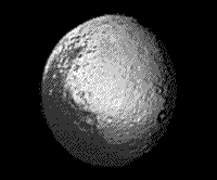 同样的主题在土卫八重复(1460公里 [907英里] 直径),离土星更远。前半球的反照率非常低(0.03-0.06 w/m2 ,与之前描述的卫星形成鲜明对比,并且与后缘地形(反照率约为0.5)存在突变边界,后缘地形严重坑坑洼洼。卫星之间这种二分法的性质仍然未知。这种后缘物质可能是在地壳铸造过程中从土卫八内部产生的。但是,黑暗的地形与含碳量高的硅酸盐(如含碳球粒陨石)是一致的。因此,土卫八的这一部分可能形成了喷出物,它来自另一颗卫星,甚至来自一个类似小行星的天体的内部。