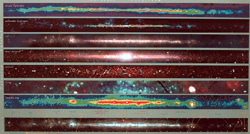 这些面板是在美国宇航局戈达德太空飞行中心的天体物理数据中心使用那里和其他地方研制的卫星的结果组装而成的。要查看每个区域的高分辨率版本并了解如何获取数据,请单击位于以下地址的网站: http://adc.gsfc.nasa.gov/mw/milkyway.html