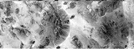 在总结手持摄影之前,我们应该先描述一下大幅面相机(LFC)。LFC是迄今为止美国载人飞行任务中功能最强大的摄像机。硬安装在航天飞机有效载荷舱内,这种405千克的相机,焦距为305毫米,格式为23厘米×46厘米(见Mollberg和Schardt,1988年)。 * )在他们使用它的少数任务中,是摄影实验的核心元素。它可能是唯一一个以铸铁为主要成分的空间载荷。从300公里(186英里)的典型高度来看,框架覆盖了约225 x 450公里(140 x 280英里)的地面尺寸。尽管非常成功,LFC并不总是飞行,主要是因为它需要专用的有效载荷舱空间、姿态控制燃料和预定时间,而不是手持摄影。1984年在41-G任务期间,利用LFC拍摄的加利福尼亚州莫哈韦沙漠的这张照片是该仪器所达到的典型质量: