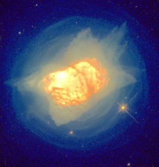 另一个例子是在红巨星爆炸周围的原始星云发育的早期阶段,如hst wfc所见: