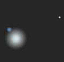 在H-R图的左上角,在主序列的上方,是一个区域,它包含一个与矮星(但在图中没有命名)极端相反的区域:蓝巨星和超巨星。这些恒星简单地成长为质量,携带它们超过了主序列的上限。通常,蓝巨星的质量比太阳大40000倍以上,直径至少是太阳的8倍,表面温度超过20000°K。它的寿命很短(约1亿年),但可以进入红巨星阶段(见下文)。天空中最亮的恒星之一是猎户座的参宿七,这是一颗蓝色超巨星(B型),如图所示:
