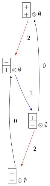 利用京都路径模型,完全晶体可以用来构造无限维的最高重量晶体和去蓝晶体 [KKMMNN1992]. 我们在中构造了示例10.6.5 [HongKang2002]: