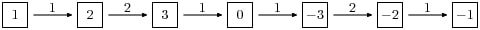 [+-, [[-1]]], [-+, [[-1]]], [+-, [[1]]], [+-, [[2]]], [-+, [[2]]], [+-, [[0]]],