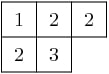 sage: T = Tableau([[1,2,2], [2,3]]); T