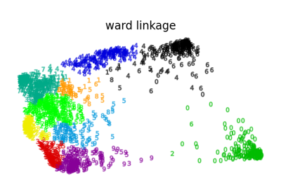 Various Agglomerative Clustering on a 2D embedding of digits