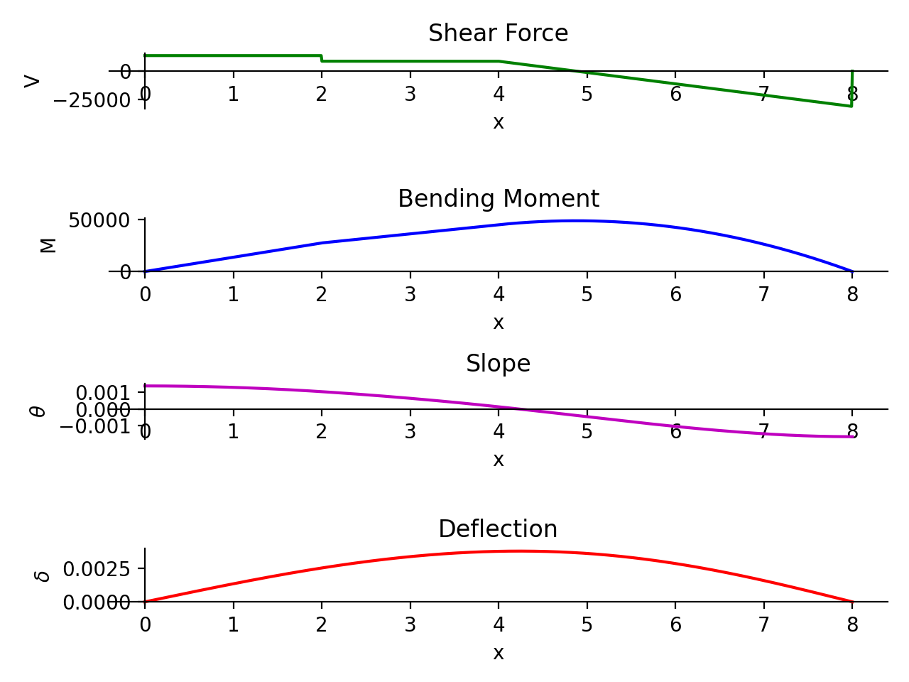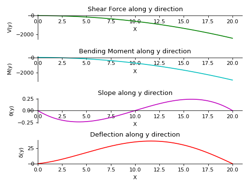 Returns a subplot of Shear Force, Bending Moment, Slope and Deflection of the Beam object along the direction specified.