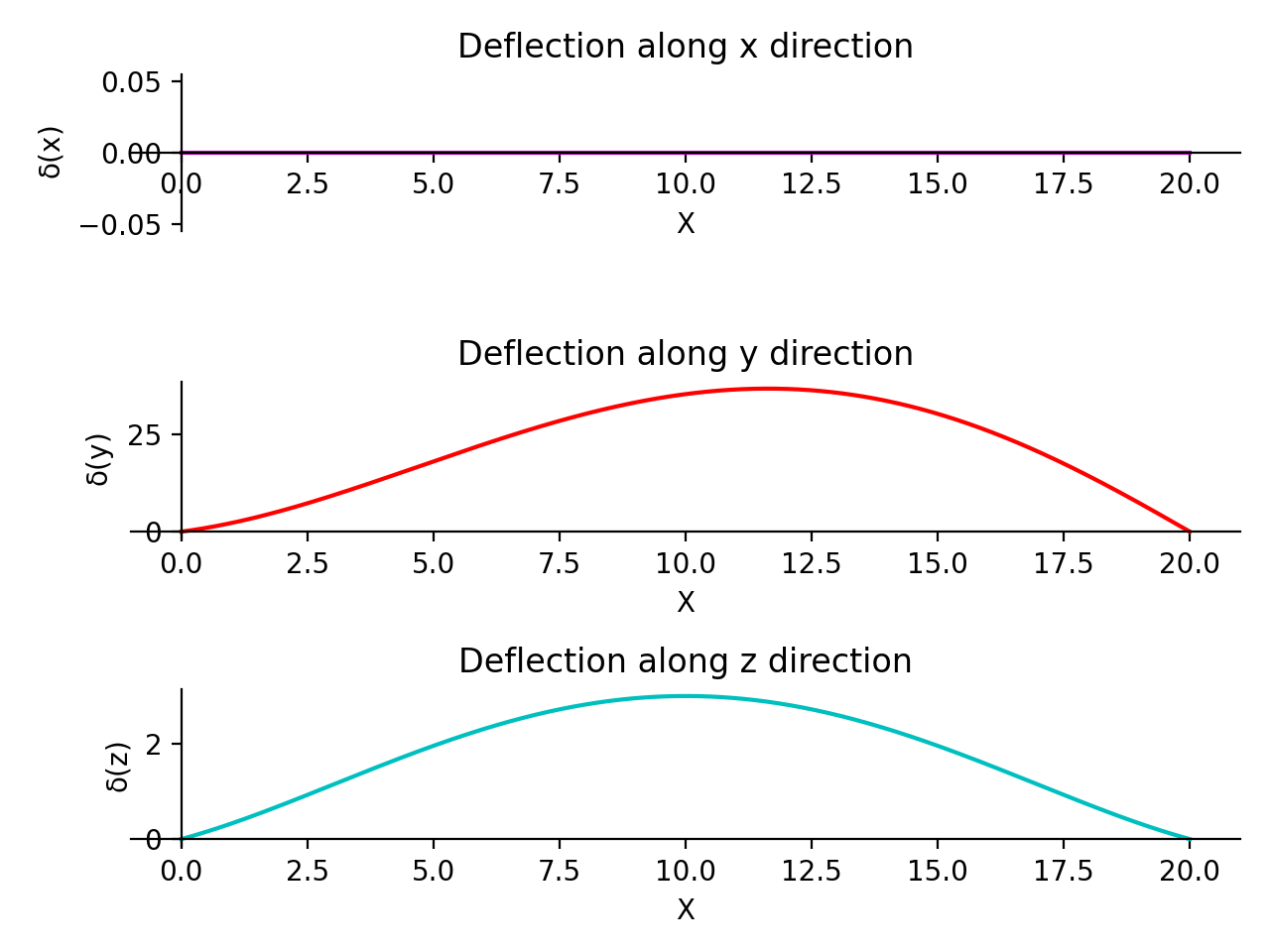 Returns a plot for Deflection along all three directions present in the Beam object.