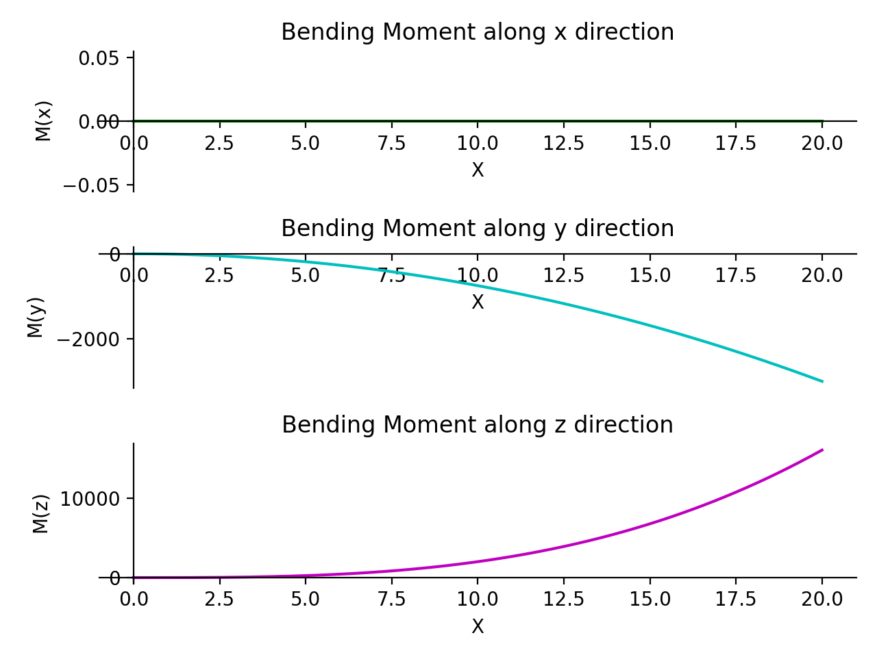 Returns a plot for bending moment along all three directions present in the Beam object.