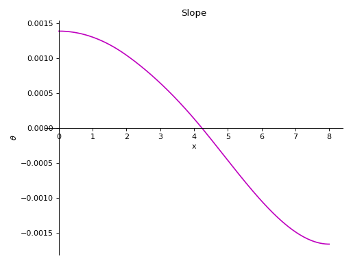 >>> from sympy.physics.continuum_mechanics.beam import Beam >>> from sympy import symbols >>> E, I = symbols('E, I') >>> b = Beam(30, E, I) >>> b.apply_support(10, 'roller') >>> b.apply_support(30, 'roller') >>> b.apply_load(-8, 0, -1) >>> b.apply_load(120, 30, -2) >>> R_10, R_30 = symbols('R_10, R_30') >>> b.solve_for_reaction_loads(R_10, R_30) >>> b.load -8*SingularityFunction(x, 0, -1) + 6*SingularityFunction(x, 10, -1) + 120*SingularityFunction(x, 30, -2) + 2*SingularityFunction(x, 30, -1) >>> b.slope() (-4*SingularityFunction(x, 0, 2) + 3*SingularityFunction(x, 10, 2) + 120*SingularityFunction(x, 30, 1) + SingularityFunction(x, 30, 2) + 4000/3)/(E*I)
