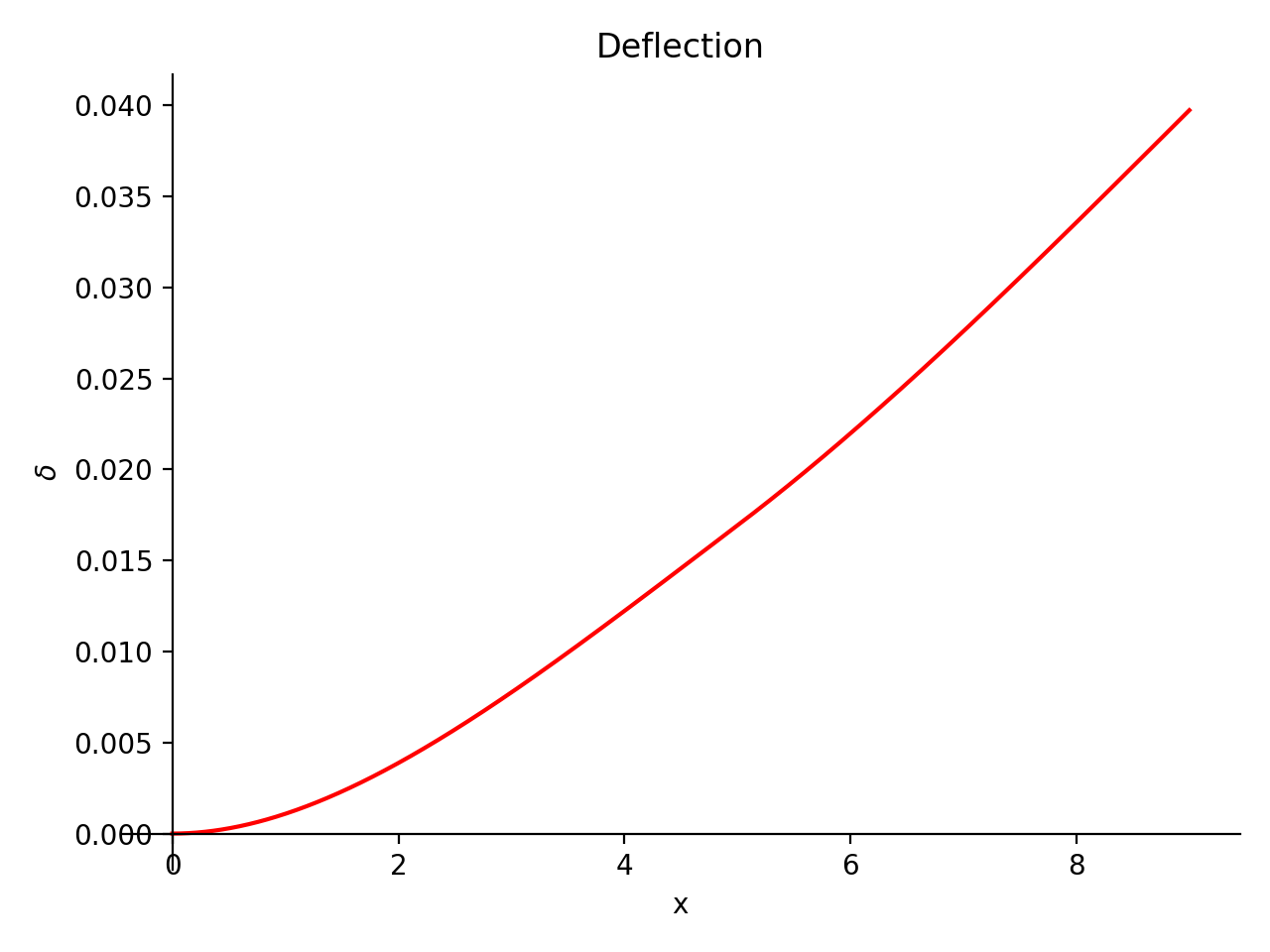 >>> b.plot_deflection(subs={E: 20E9, I: 3.25E-6})