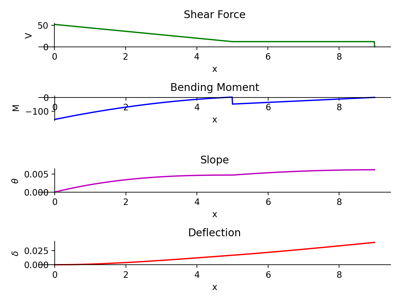 solve_for_reaction_loads()shear_force()bending_moment()slope()